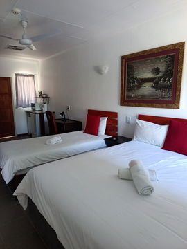 Spacious ground floor double unit sleeping max. 3 with 1 queen bed and 1 single bed, industrial ceiling fan, a fully equipped kitchenette with fridge/freezer, microwave, kettle, Smart TV & DSTV, separate toilet and shower, private entrance and own private patio with braai area.
